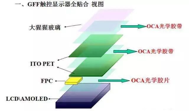 四、OCA光学胶在部分光电显示组件中的应用图示如下: