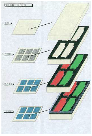 CF 工序是从投入白玻璃基板,到黑矩阵、三基色及ITO 制作完成。具体见下图: