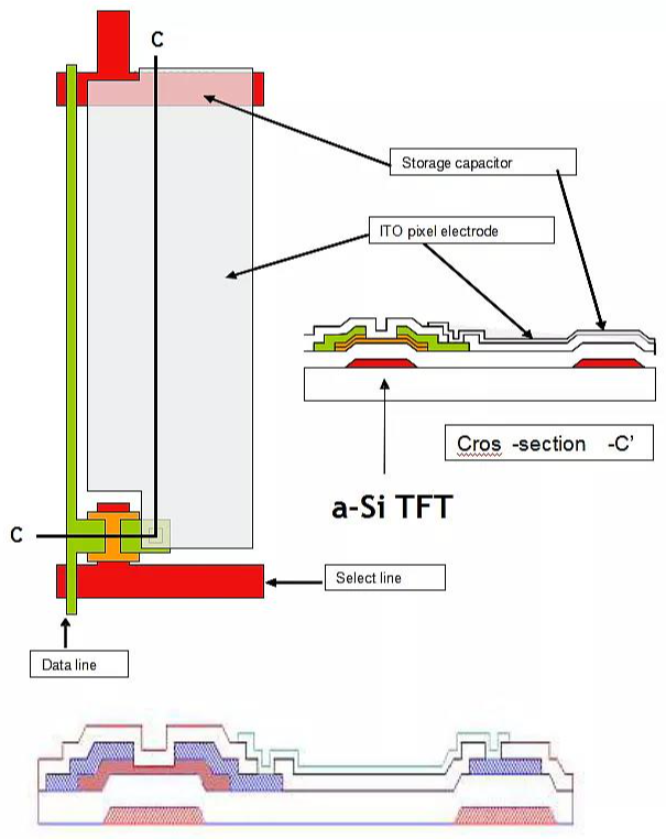 采用背沟道刻蚀型(BCE)TFT 显示像素的结构。具体结构见下图: