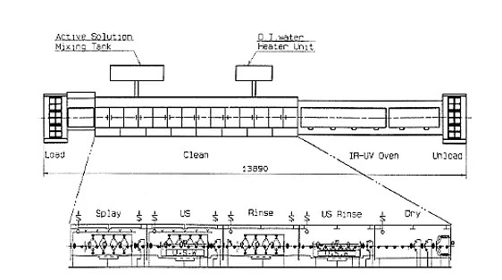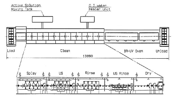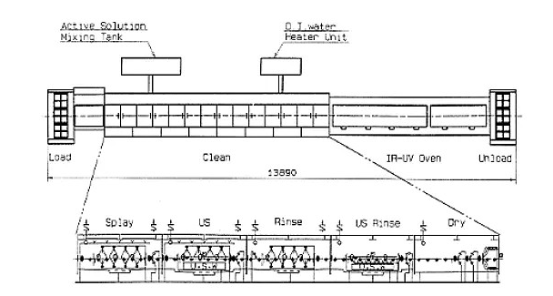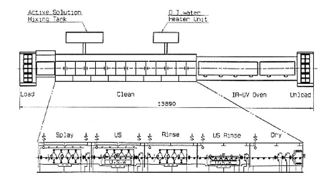 湿刻的设备一般与后面清洗、干燥的设备连成线,见下图: