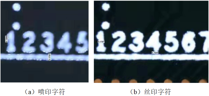 另外,由于喷印油墨极低粘度的特点,在油墨组分上同丝印油墨差异很大,表现在PCB基材上的白度和立体感往往会比现有丝印油墨要显得弱一些,有时就会觉得相同厚度和大小字符下丝印字符可能会更清楚,但是由于喷印墨水的流平性会好一些,所以喷印字符会觉得更光滑点。这里应该坚持以IPC字符标准——目视清晰可辨——为依据来判断字符质量是否符合要求,不能强求喷印和丝印完全一致。