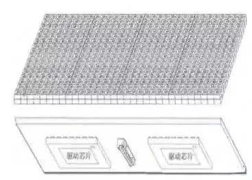 如上图所示,为一种COB集成封装LED显示模块,正面为LED灯模组构成像素点,底部为IC驱动元件,最后将一个个COB显示模块拼接成设计大小的LED显示屏。