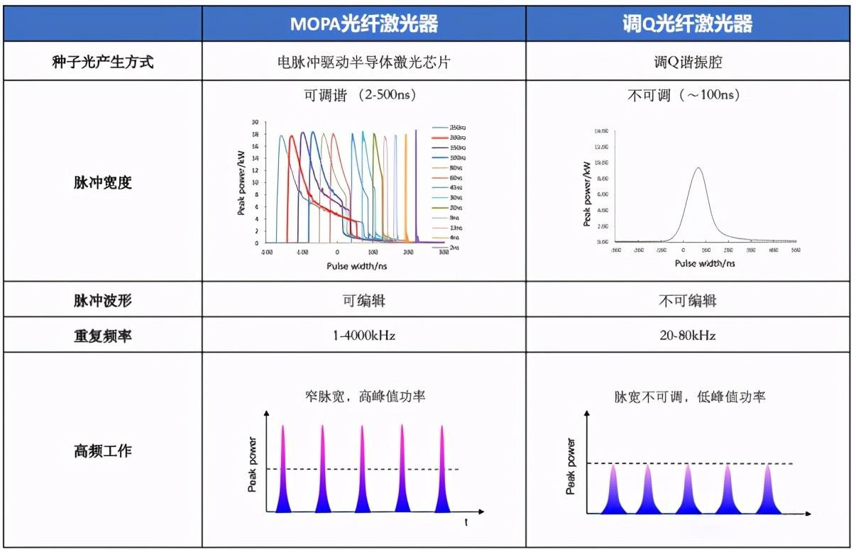 MOPA光纤激光器与调Q光纤激光器光学参数对比
