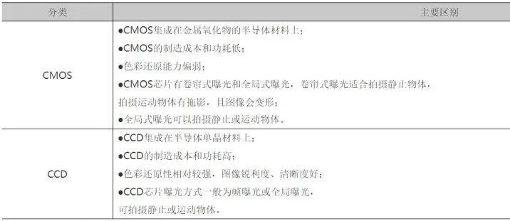 按照芯片类型:可以分为CCD相机、CMOS相机;