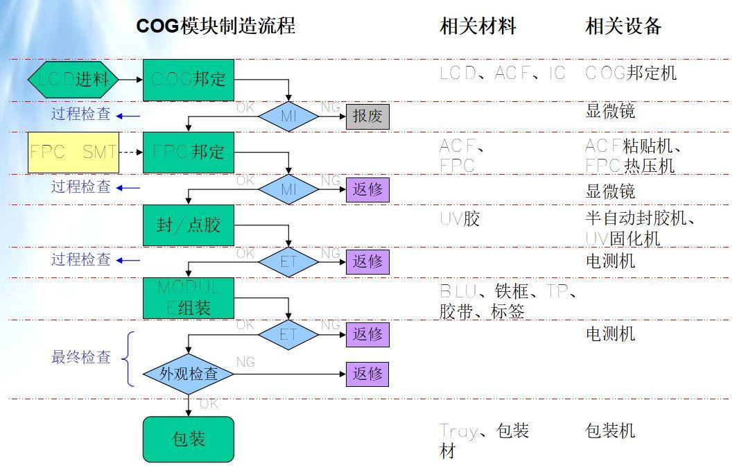 COG/FOG:LCD、IC、ACF、FPC、涂覆胶、缓冲材