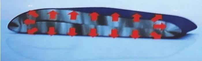 下图显示的是卷绕电芯的标准结构特性,两端有圆角区域(图3)。在电池的充放电过程中,因为膨胀和收缩不一致,会导致极片与隔膜间隙变大,当此处的电解液不富裕时,将影响容量的发挥,长时间的使用会带来析锂安全问题。并且,随着能量密度提升的要求,负极逐步导入硅负极体系,由于硅负极极片膨胀大,卷绕式极组容易出现内圈极片断裂,影响电池使用寿命,限制了硅材料添加量。卷绕电芯变形及圆角区间隙变形如图4与图5所示。