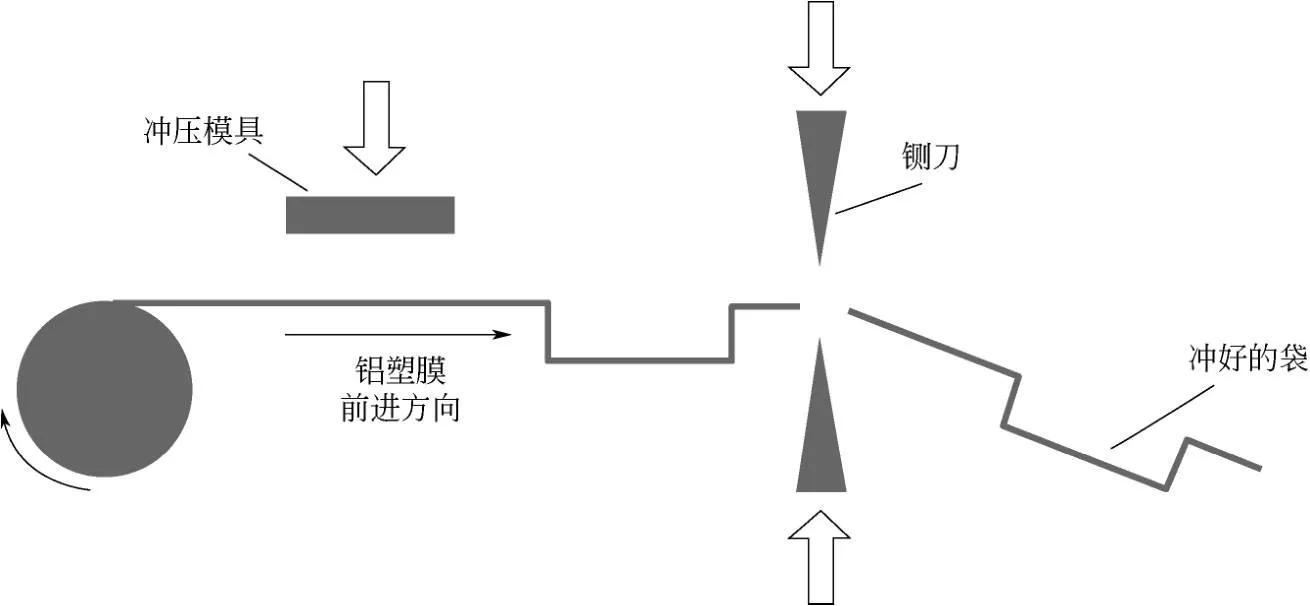 铝塑膜冲好并裁剪成型后,一般称为袋(pocket)。一般在电芯较薄的时候选择冲单坑,在电芯较厚的时候选择冲双坑,因为一边的变形量太大会突破铝塑膜的变形极限而导致破裂。