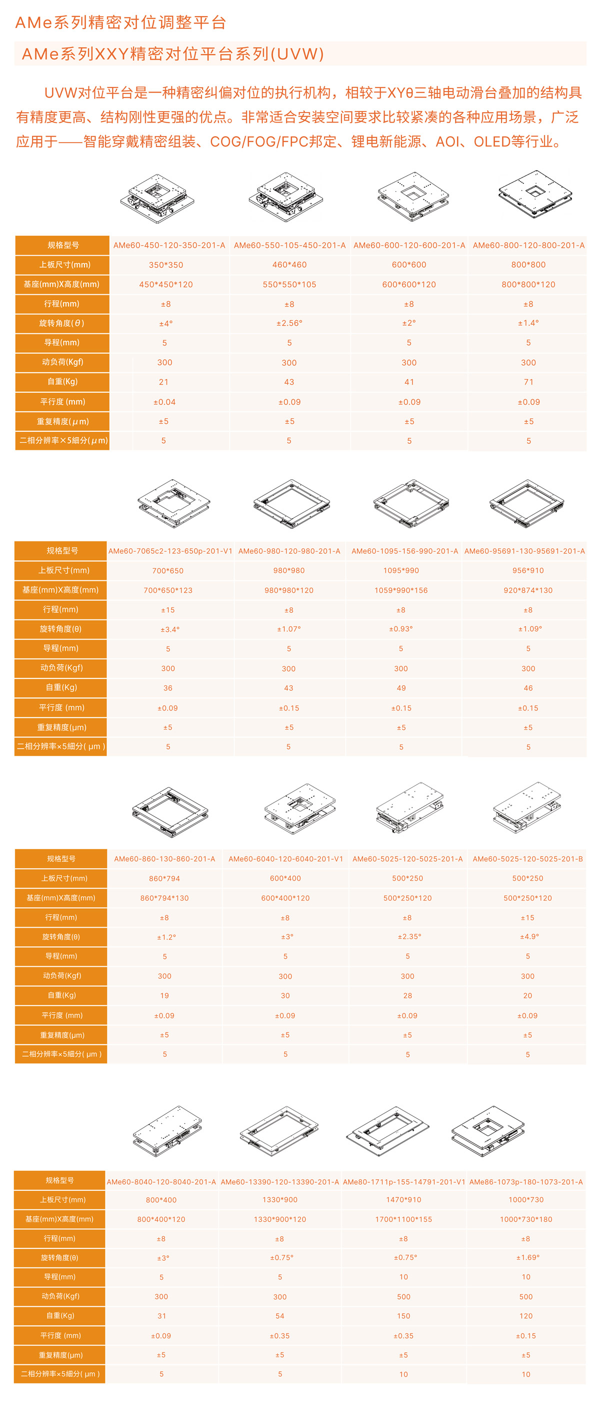 UVW对位平台是一种精密纠偏对位的执行机构,相较于XYe三轴电动滑台叠加的结构具有精度更高、结构刚性更强的优点。非常适合安装空间要求比较紧凑的各种应用场景,广泛应用于——智能穿戴精密组装、COG/FOG/FPC邦定、锂电新能源、AOI、OLED等行业。