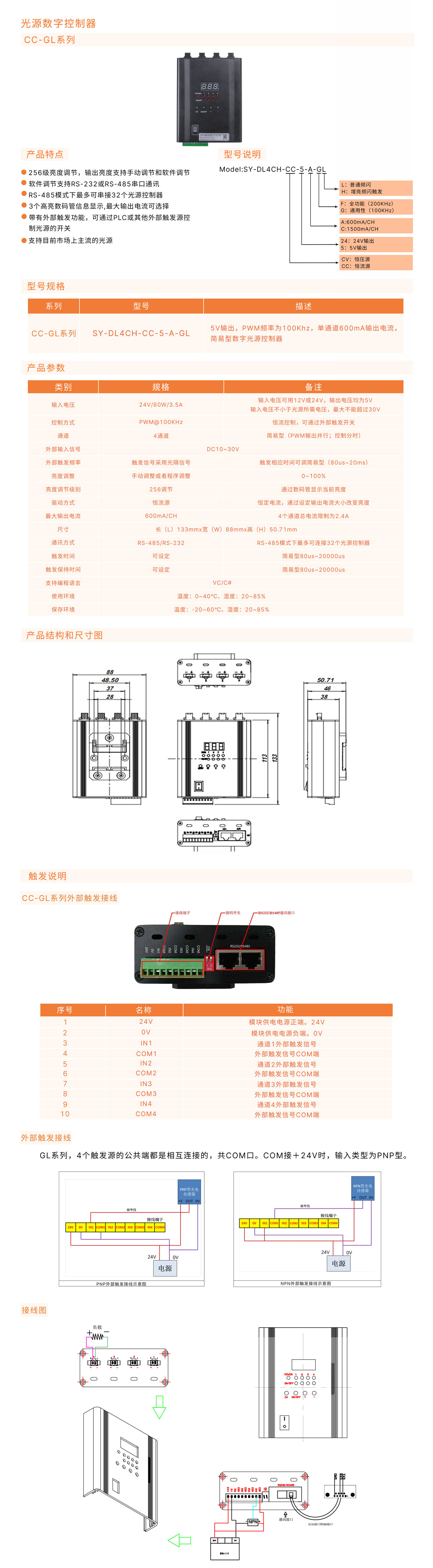 ●带有外部触发功能,可通过PLC或其他外部触发源控制光源的开关