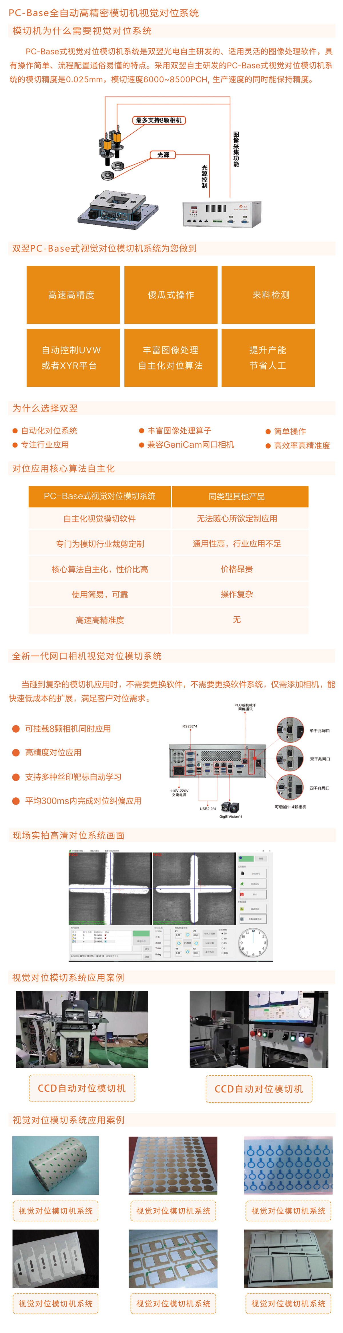 PC-Base式视觉对位模切机系统是伟德国际唯一官网入口光电自主研发的、适用灵活的图像处理软件,具有操作简单、流程配置通俗易懂的特点。采用伟德国际唯一官网入口自主研发的PC-Base式视觉对位模切机系统的模切精度是0.025mm,模切速度6000~8500PCH,生产速度的同时能保持精度。