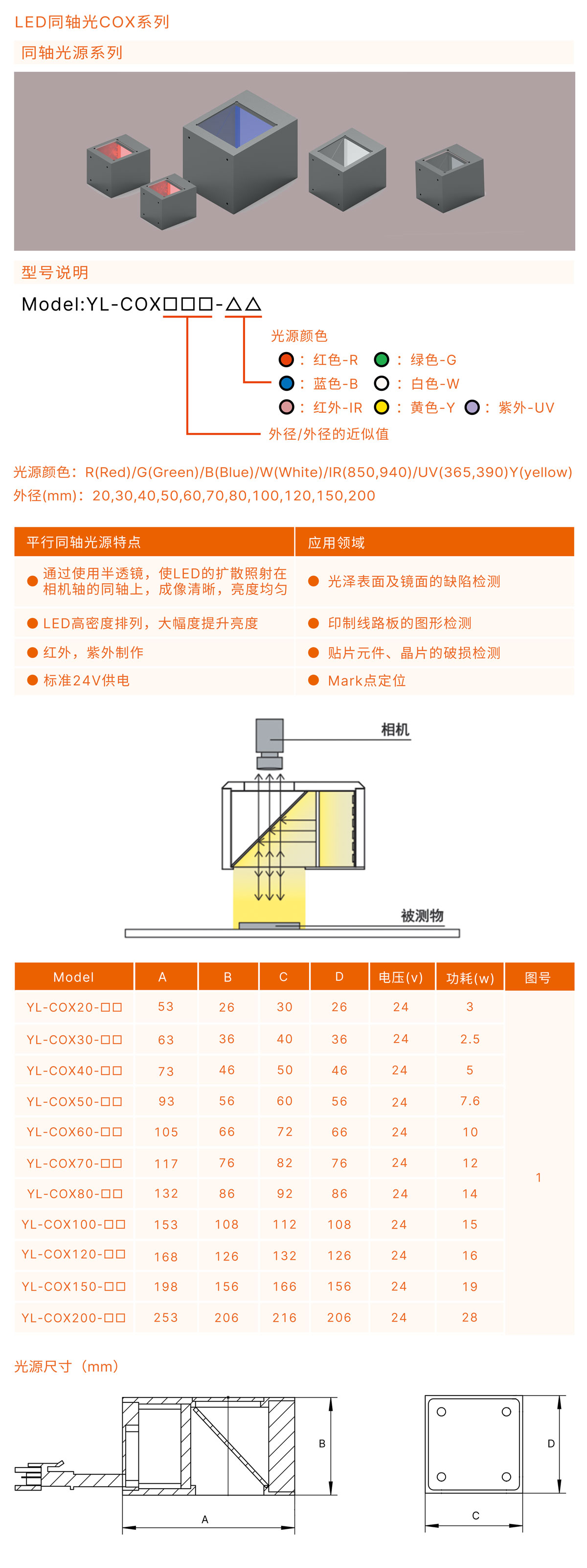 LED同轴的特点:通过使用半透镜,使LED的扩散照射在相机轴的同轴上,成像清晰,亮度均匀