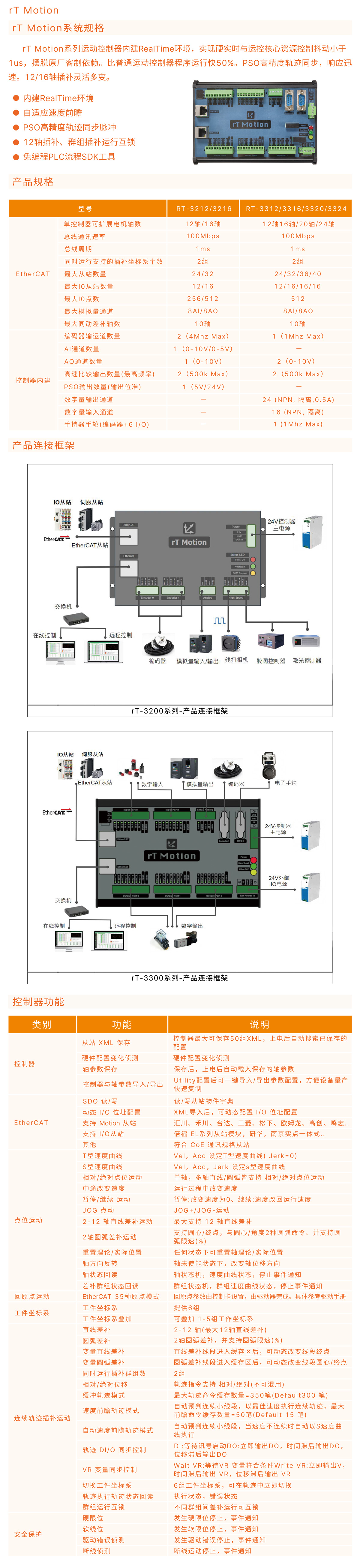 rT Motion系列运动控制器内建RealTime环境,实现硬实时与运控核心资源控制抖动小于1us,摆脱原厂客制依赖。比普通运动控制器程序运行快50%。PSO高精度轨迹同步,响应速。12/16轴插补灵活多变。