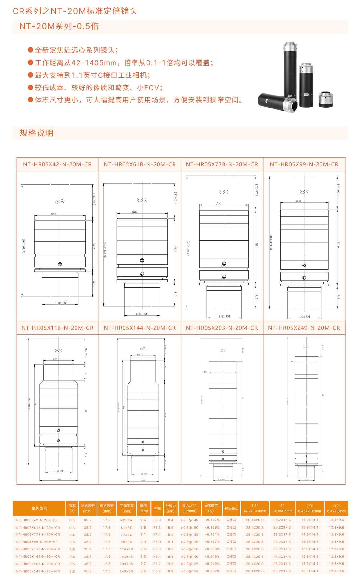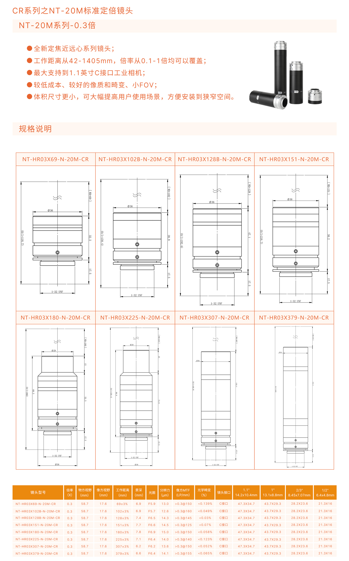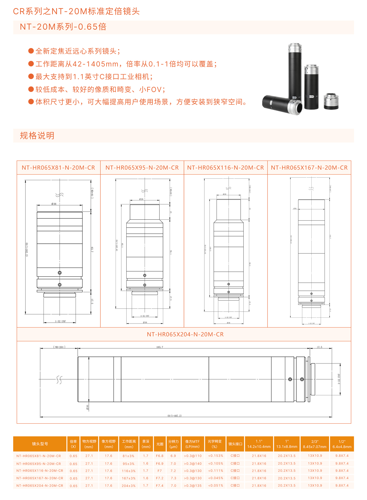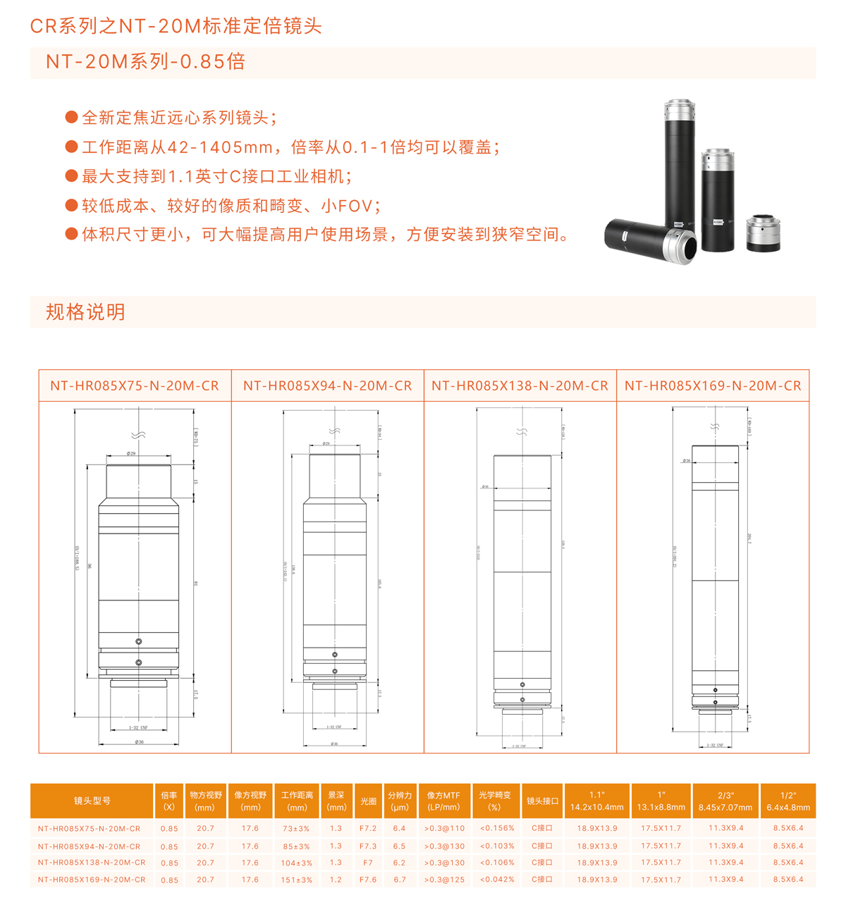 工作距离从42-1405mm,倍率从0.1-1倍均可以覆盖;