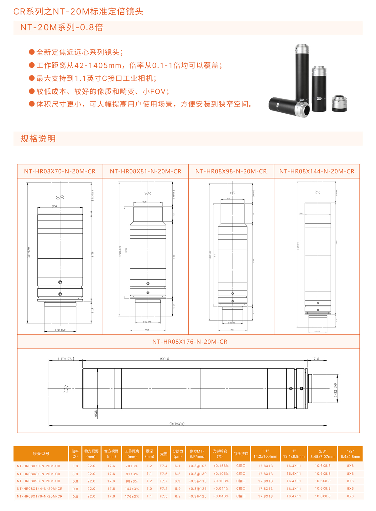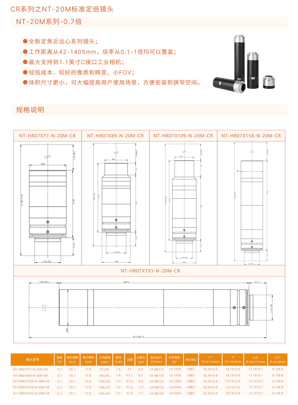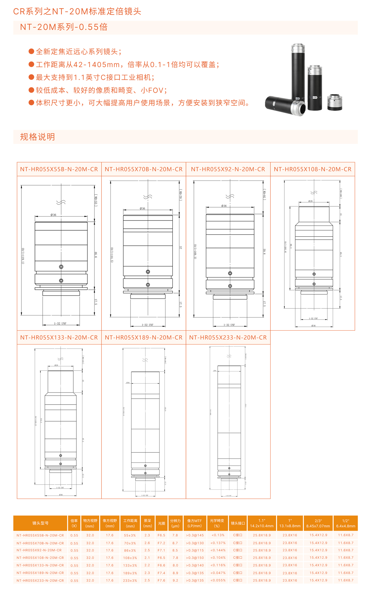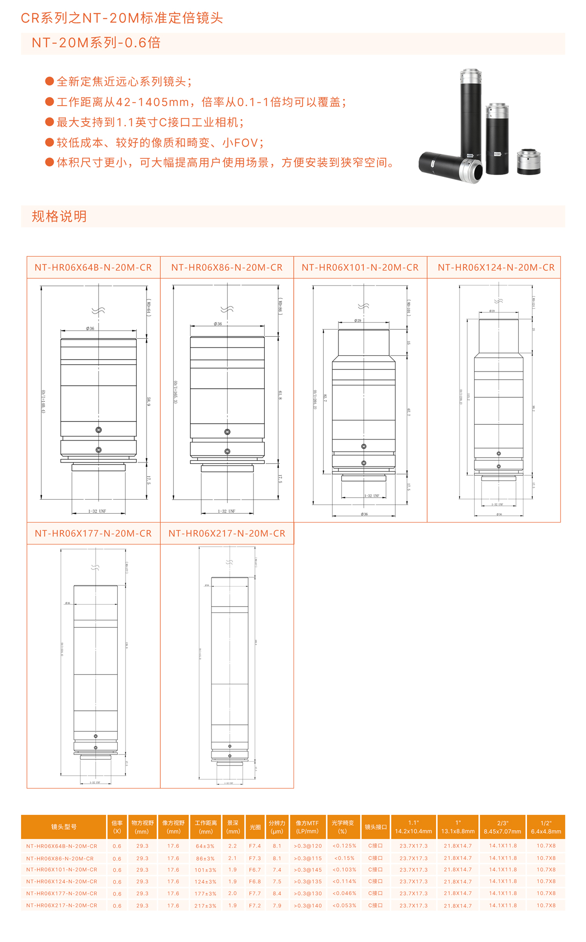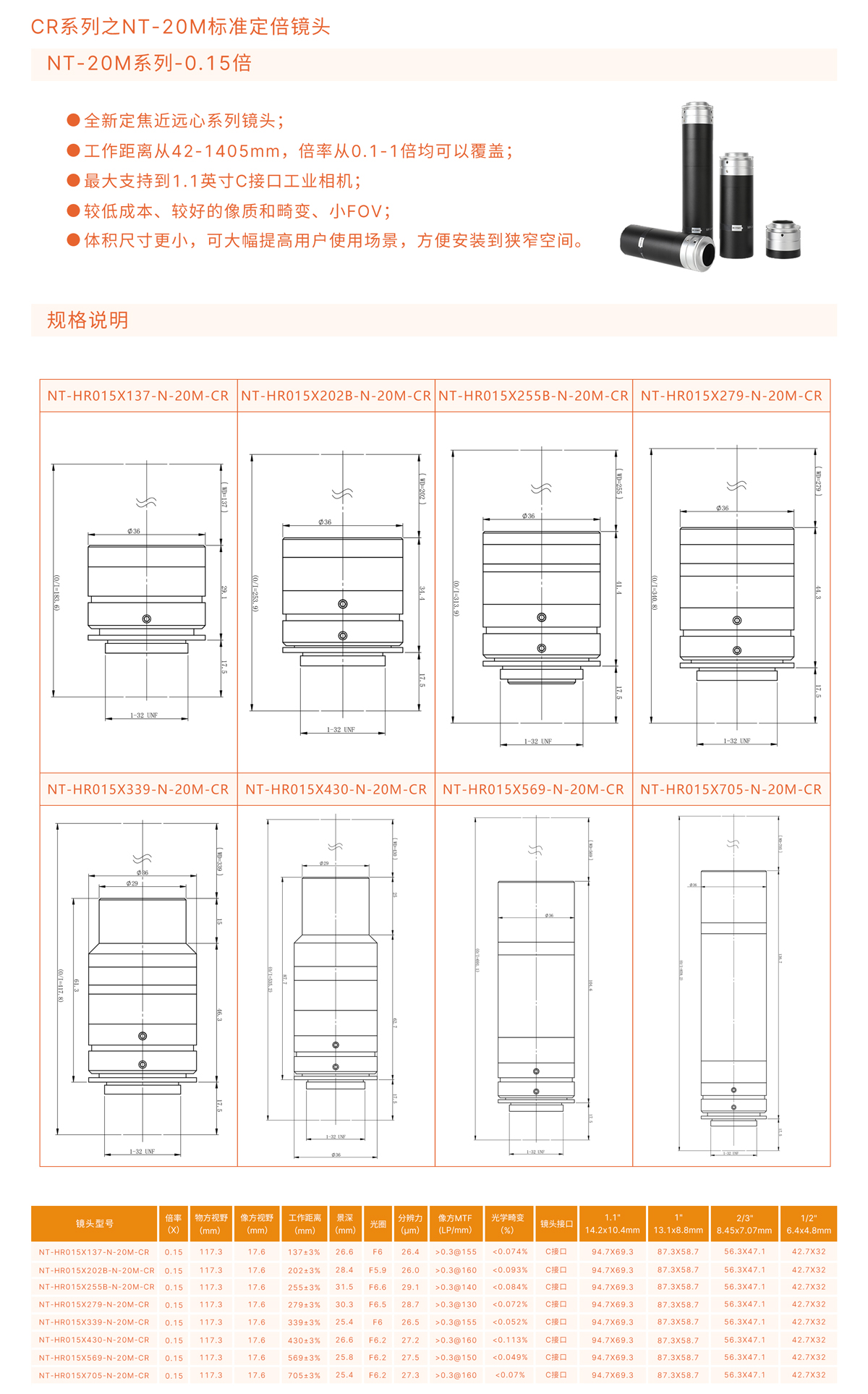 工作距离从42-1405mm,倍率从0.1-1倍均可以覆盖;