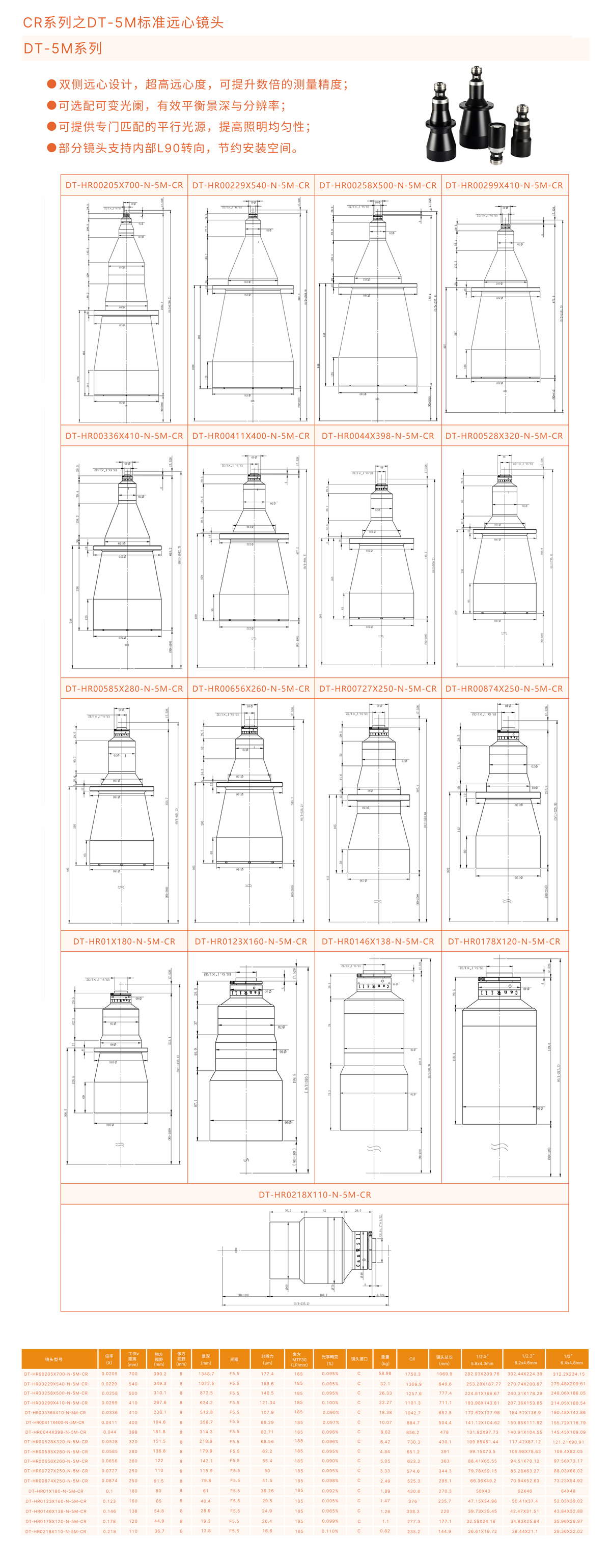 CR系列之DT-5M标准远心镜头资料说明