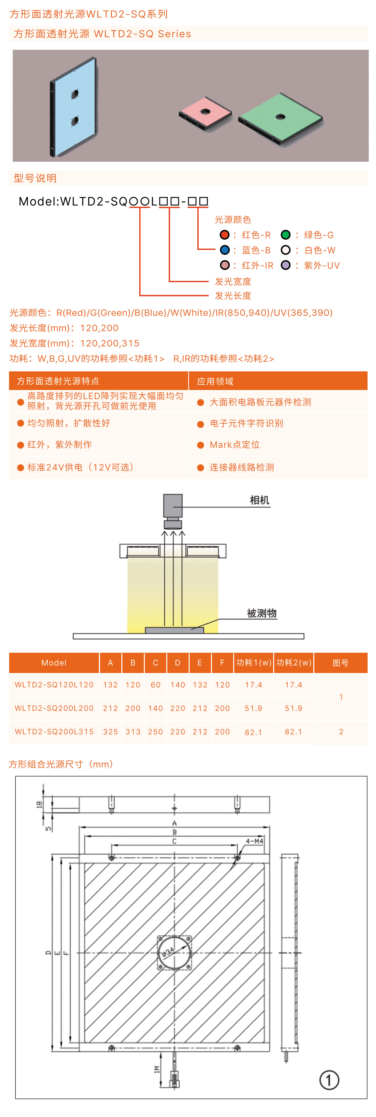 方形面透射光源特点: