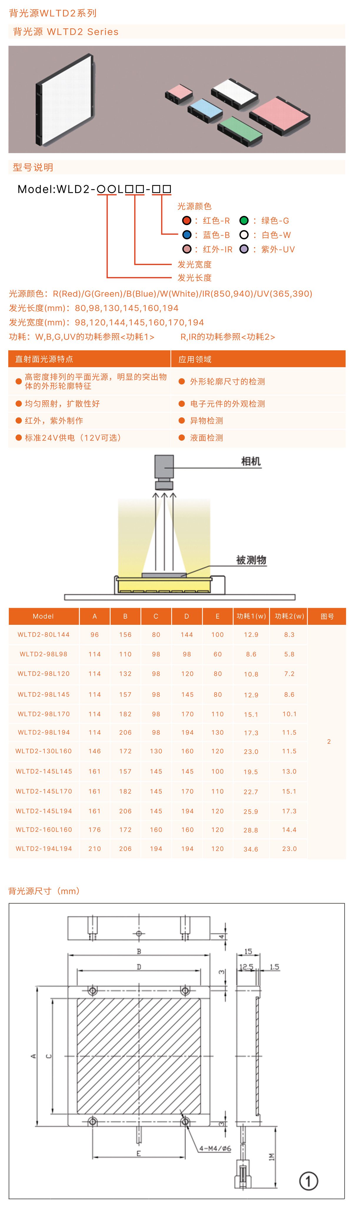 高密度排列的平面光源,明显的突出物体的外形轮廓特征,均匀照射,扩散性好