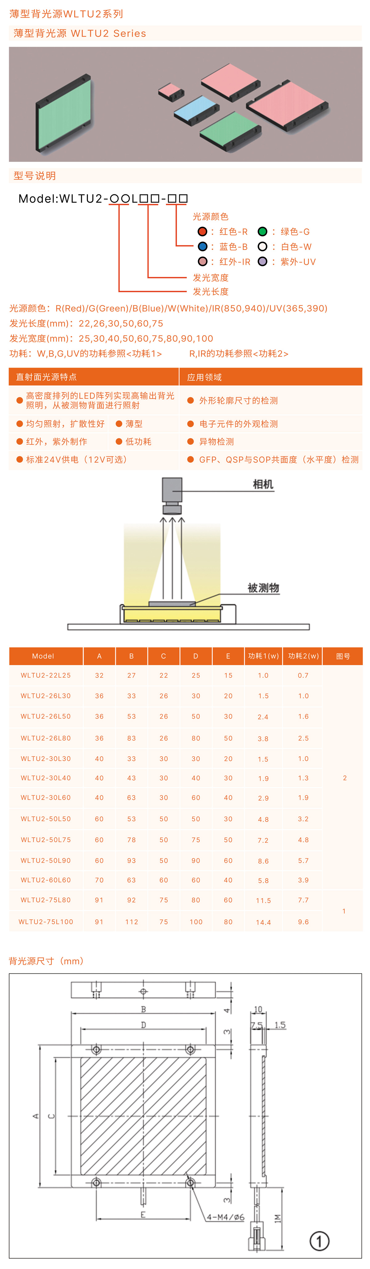 高密度排列的LED阵列实现高输出背光照明,从被测物背面进行照射,均匀照射,扩散性好,低功耗薄型直射面光。