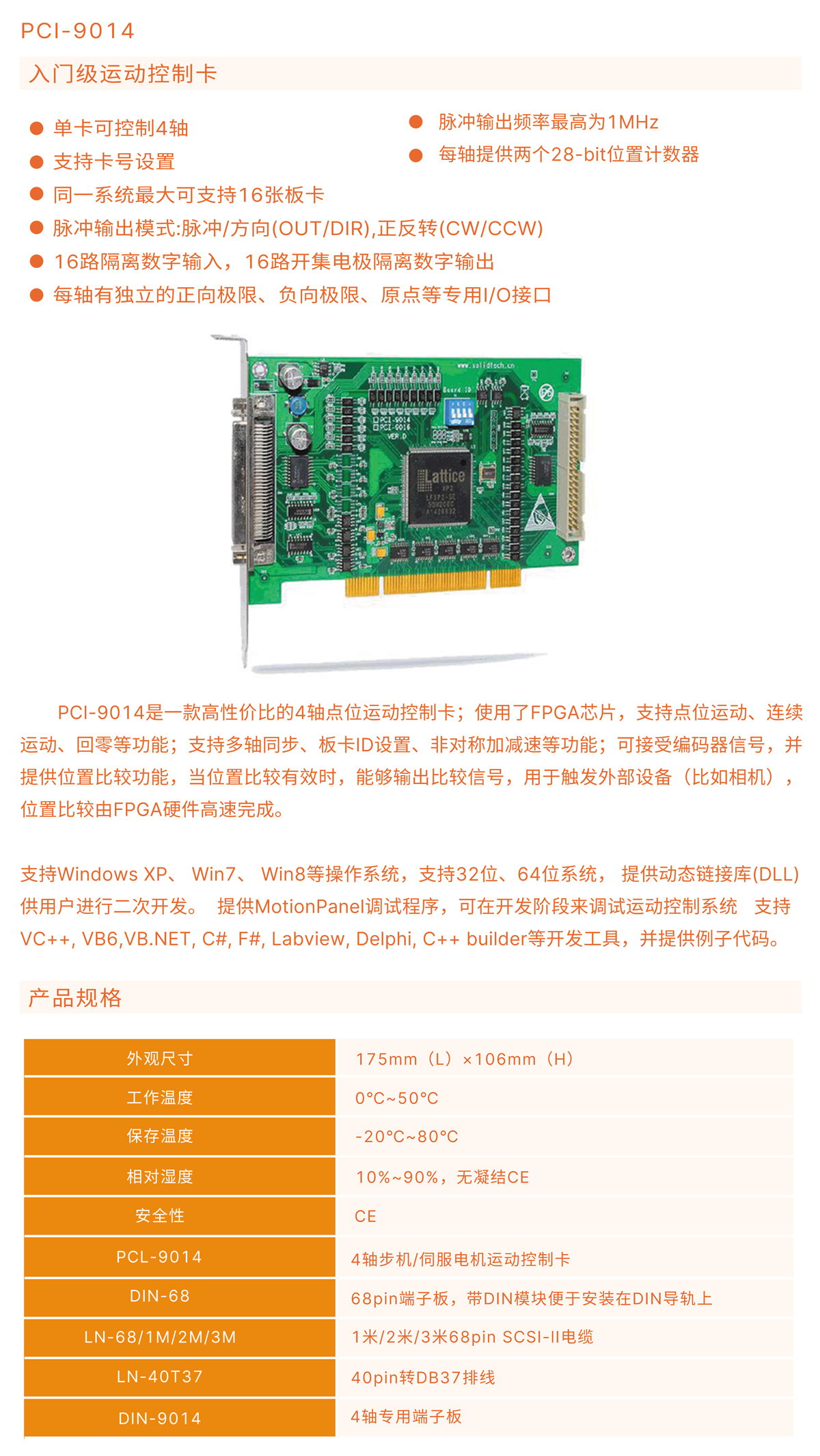 ● 每轴有独立的正向极限、负向极限、原点等专用I/O接口● 单卡可控制4轴