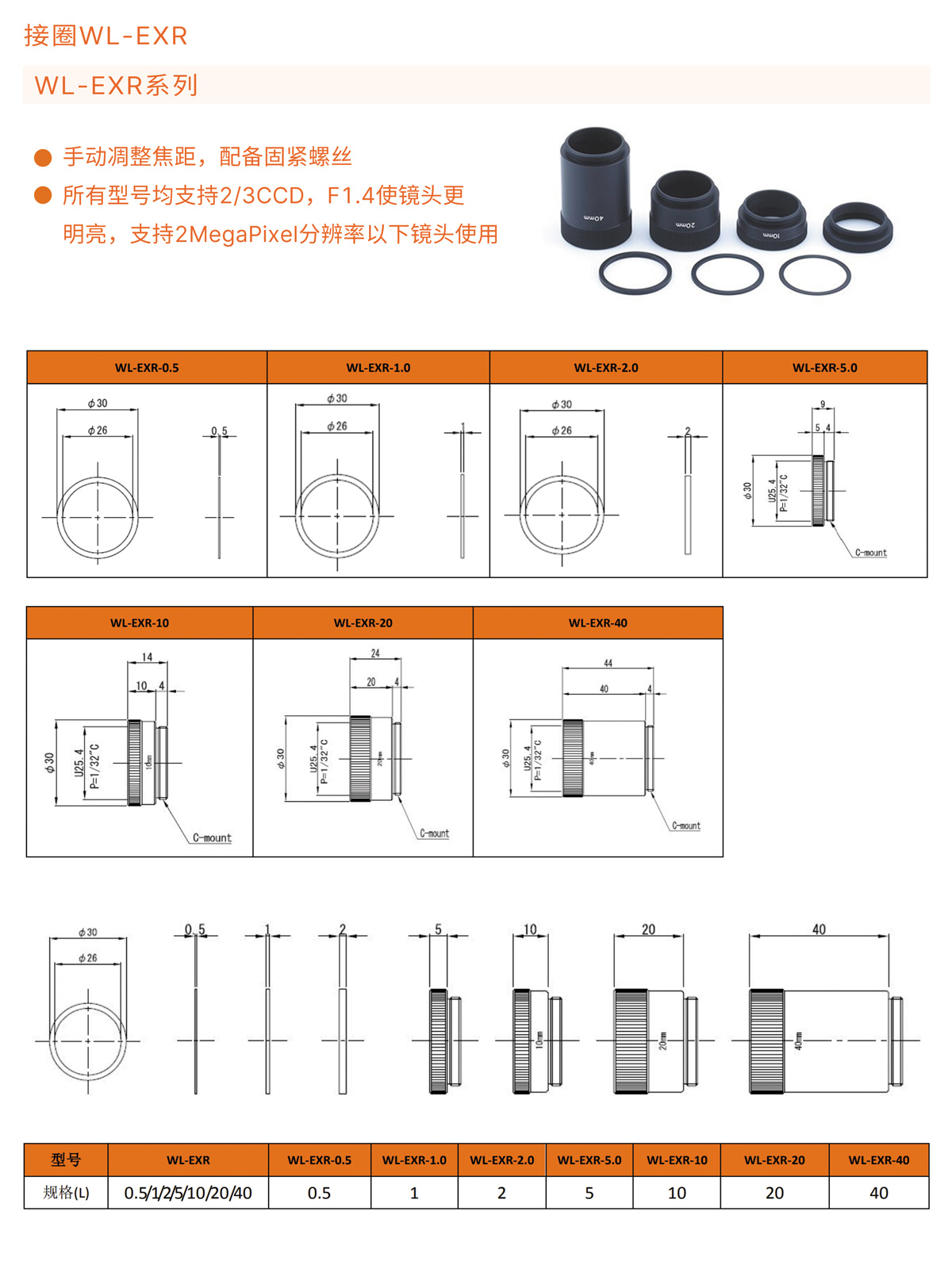 手动凋整焦距,配备固紧螺丝,所有型号均支持2/3CCD,F1.4使镜头更明亮,支持2MegaPixel分辨率以下镜头使用