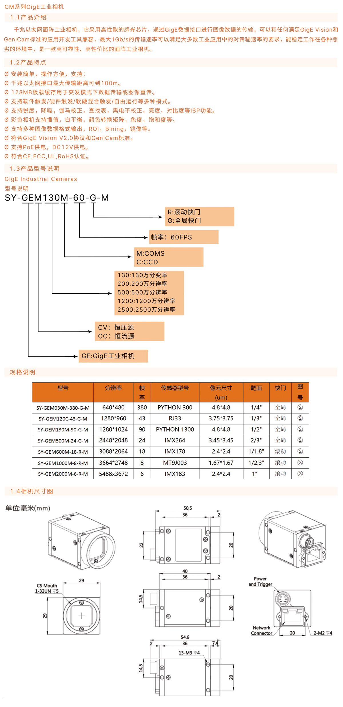 CM系列 GigE工业相机 - Datasheet 时间:2020-02-28 18:04:59